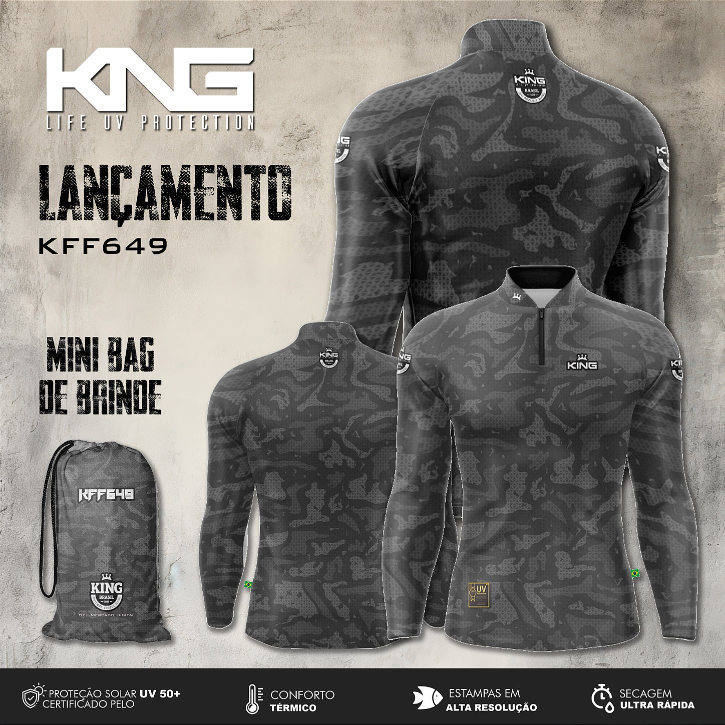 Para os mais exigentes, as camisas da King Brasil com proteção UV protegem a pele durante a exposição ao sol com maior conforto e funcionalidade.